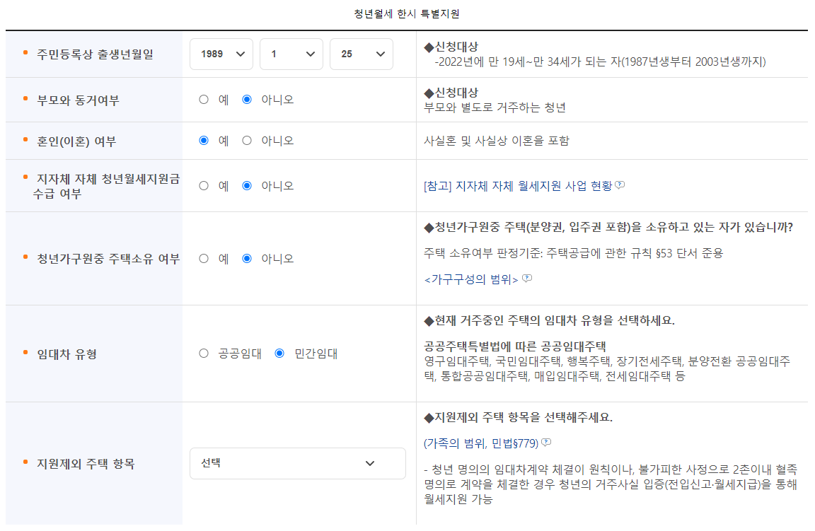 | 청년 월세 지원 신청. | |