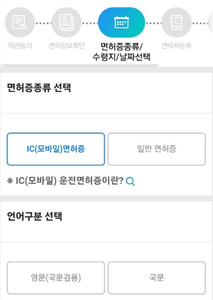 - 면허증 종류 : IC 면허증 선택 - 언어구분 및 수령방법 선택.