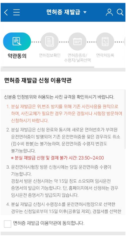 - IC 운전 면허증 발급 클릭 후 이용약관등에 대한 동의.