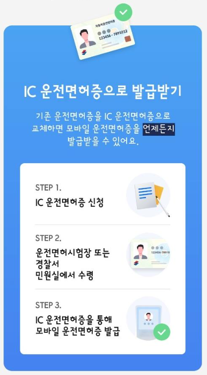 - 모바일 운전면허증 발급방법 - IC 운전면허증으로 교체 후 직접 발급신청 / 운전 면허 시험장 방문 후 바로 발급.