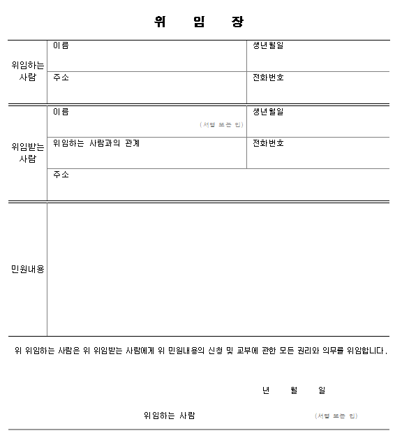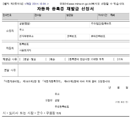 - 대리인 및 법인, 리스차량 재발급 - 위임장 및 신청서 (본문 참조)