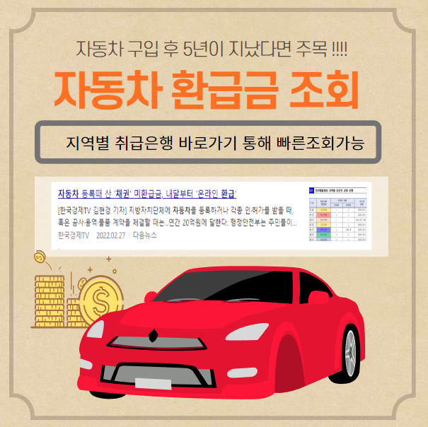 지역 취급 은행별) 자동차 환급금 조회 바로가기