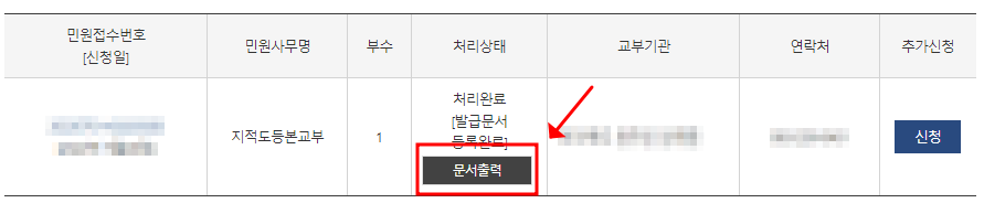- 지적도 무료열람 접수번호 및 사무명, 처리상태 확인 후 문서 출력.
