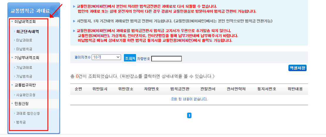 - 미납내역 조회(최근단속내역, 미납과태료, 미납범칙금등)