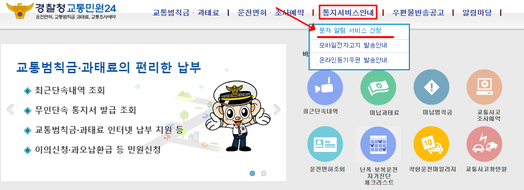 - 경찰청 교통민원 24 접속 후 통지서비스 - 문자알림 서비스 신청.