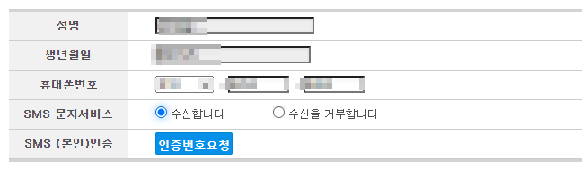 - 별도의 로그인 인증 없이 성명 / 생년월일 / 휴대폰 번호 / sms 문자서비스 / 본인인증을 통해 신청.