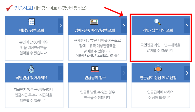 - 국민연금 납부내역조회 - 국민연금 홈페이지에서 빠르게 조회가능.