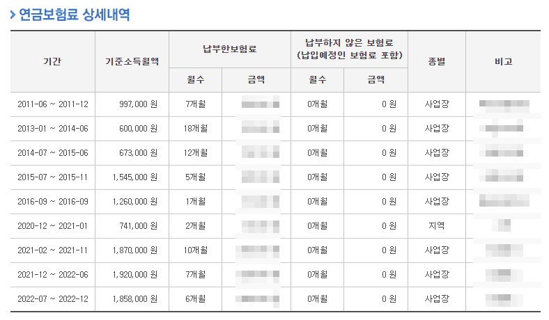 5. 연금 보험료 상세 내역 확인.