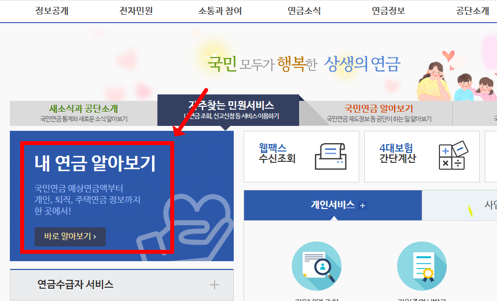 - 자주 찾는 민원서비스 - 내 연금 알아보기.