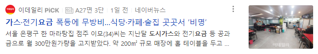 큰 상승폭으로 인하여 도시 가스 요금을 납부하지 못해 가스 공급마저 끊긴 가구가 2만 6천세대나 되며, 예상치 못하게 40만원이 넘는 가스비로 인한 사례들도 속속히 보도 되고 있습니다.