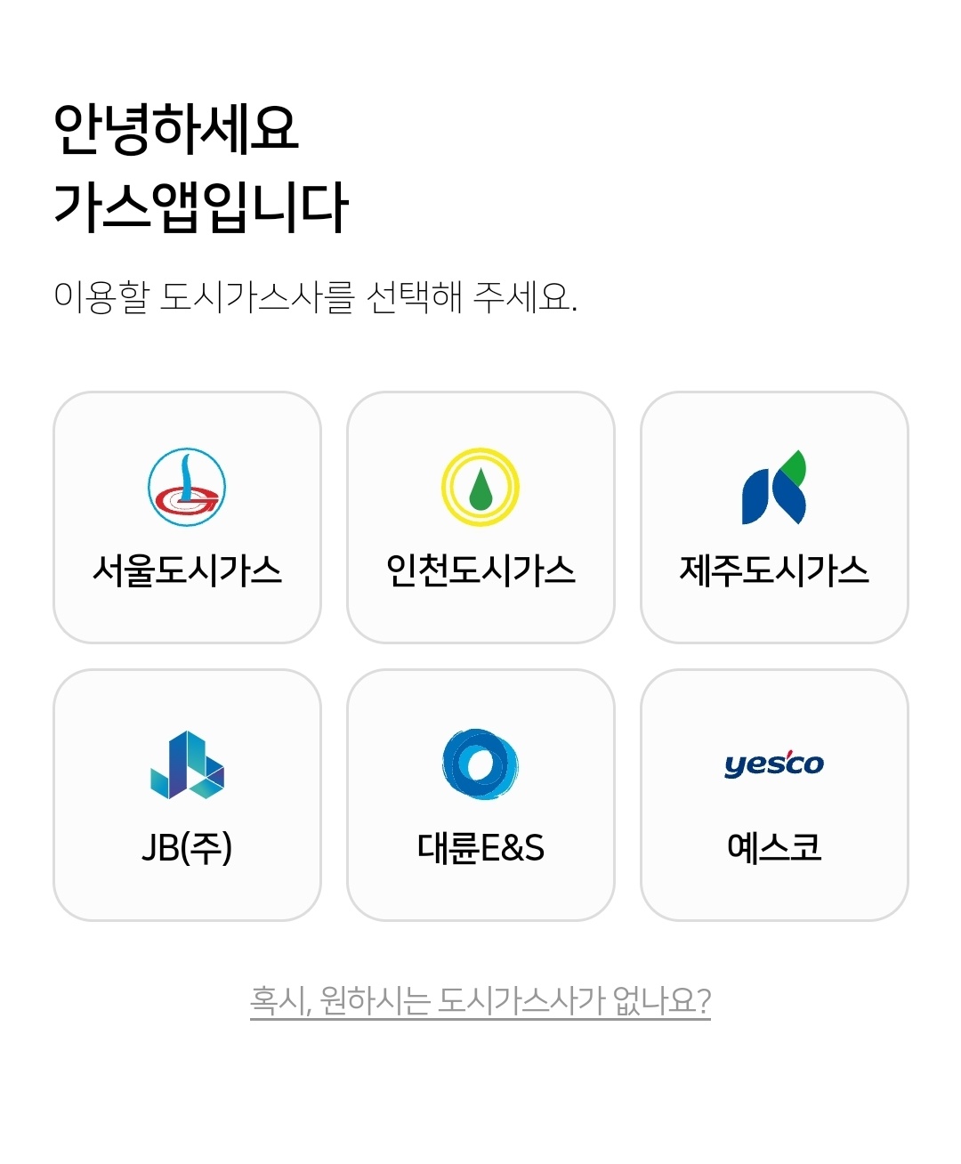 만약 원하는 도시가스사가 없을 경우 웹사이트 홈페이지 접속을 통해 진행하시기 바랍니다.