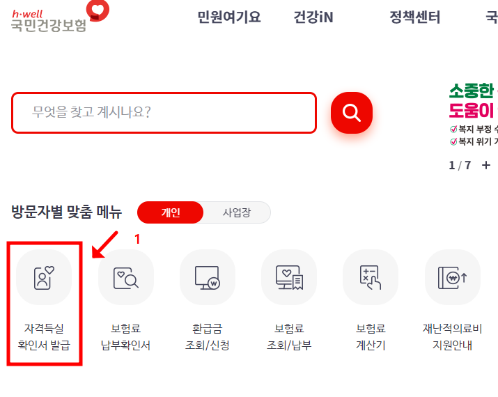 ⊙ 건강보험 자격득실 확인서 인터넷 발급.