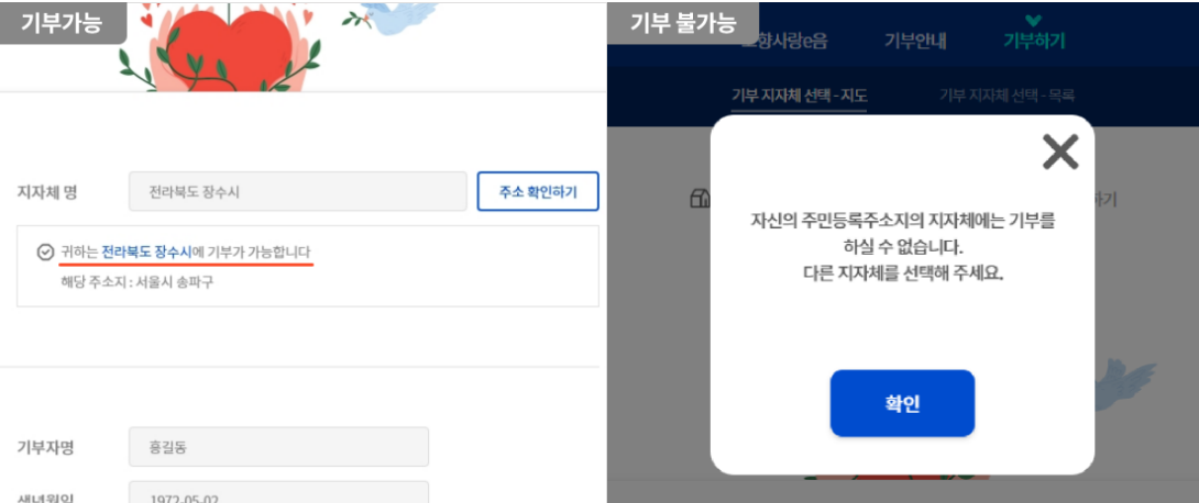 7. 기부가능 및 불가능 여부 확인