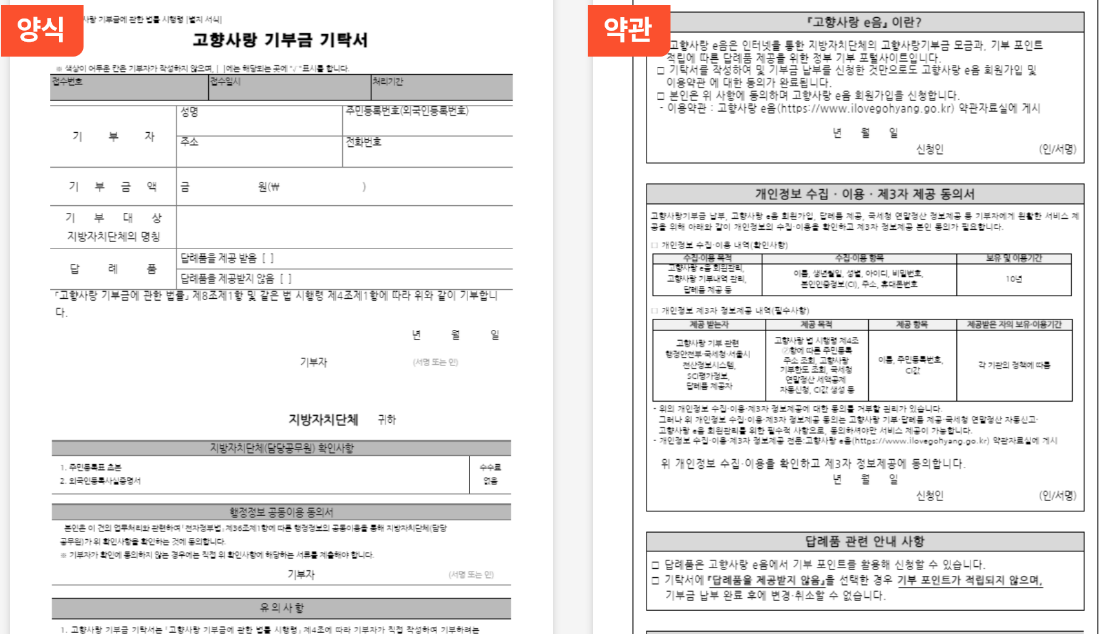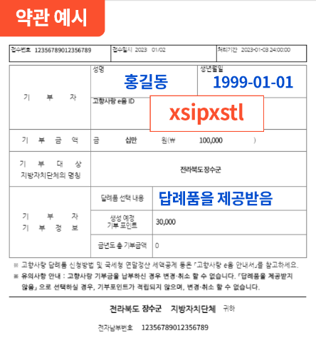 - 답례품 구매를 위해서 납부신청서에 적힌 아이디가 필요하기에 납부신청서 분실하지 않도록 주의.