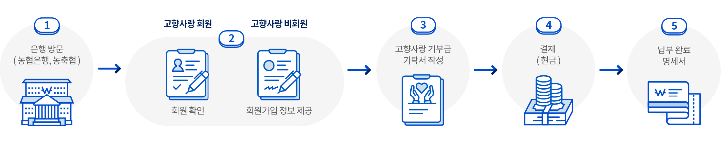 - 은행 담당자가 출력된 납부 신청서를 전달받아 기부금 납부까지 진행되면 오프라인 기부가 완료됨.