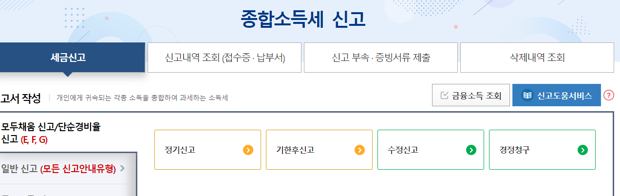 - 신고기간 : 매년 5월 1일 ~ 5월 31일. (작년 1년간 벌어들인 소득을 해당년도 5월에 신고)