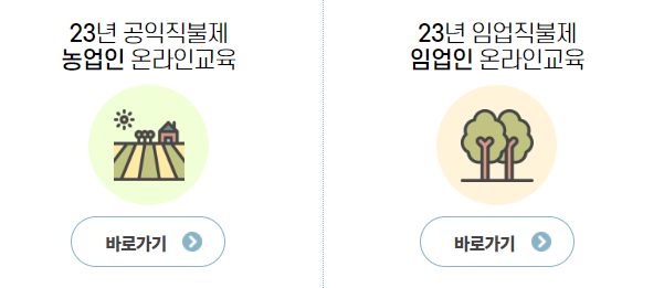 - 대상자 : 2023년 신규 신청자 및 전년도 준수사항 위반자 - 교육방법 : 대면 - 농업기술센터, 지역농협, 지자체 교육 온라인 - 농업교육 포털에서 직불교육 이수 |