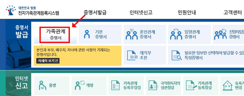 가족관계증명서 인터넷 발급