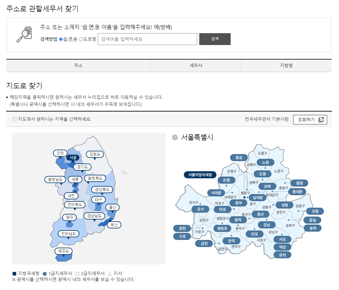 - 관할 세무서 찾기를 통해 거주지역 환급일 확인 가능.