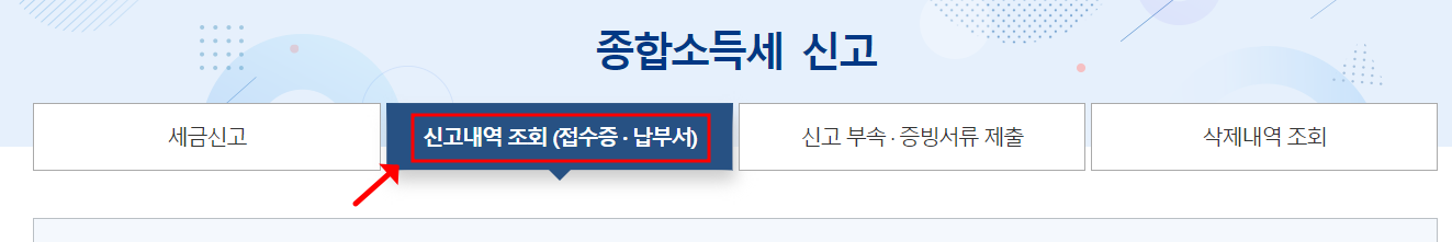 - 종합소득세 신고 - 신고내역(접수증,납부서) 클릭.