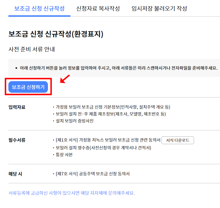| 지원 대상 | 가정용 친환경 보일러를 설치 및 교체하는 경우 |