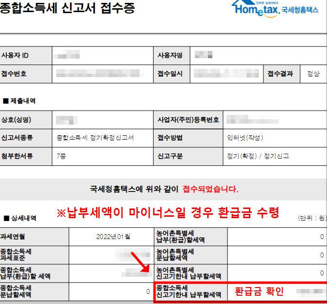 - 납부세액이 마이너스일 경우 환급금 수령.