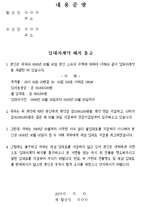 - 임대차 계약 해지 통보 -