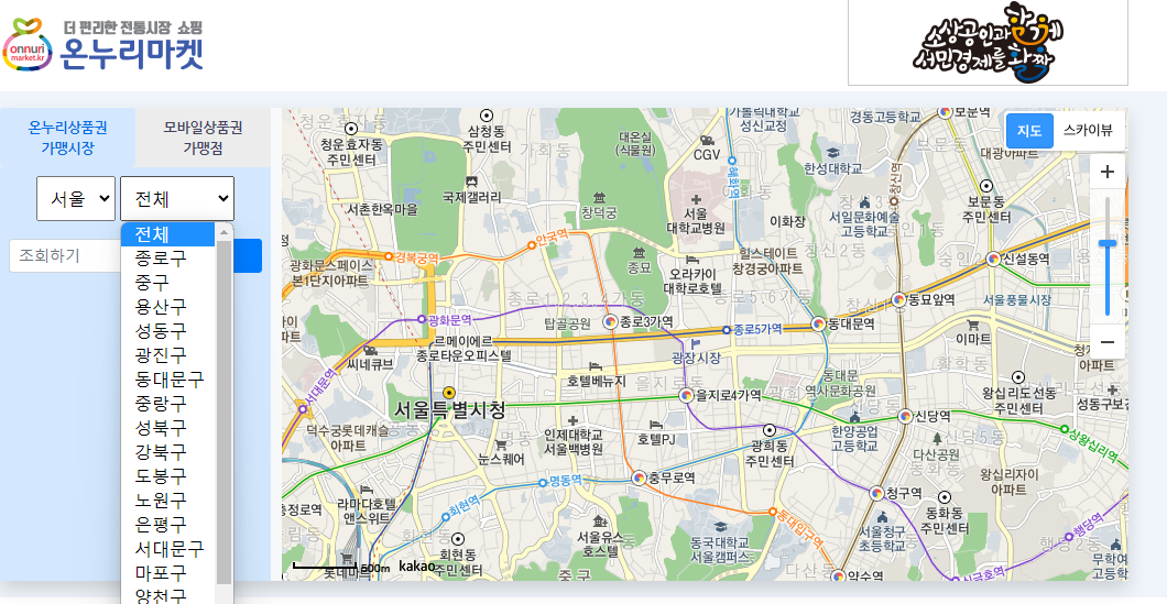 온누리 마켓 내 온누리 상품권 및 모바일상품권 사용이 가능한 사용처에 대한 정보를 전국 제공하고 있으며 온나인 전통 시장몰 사이트 또한 바로가기를 통해 빠르게 접속 할 수 있도록 제공되어 집니다. 보다 자세한 전국 가맹점에 대한 정보 필요시 전국 가맹점 자세히를 클릭 후 본인이 원하는 지역에 대한 정보를 조회할 수 있습니다.