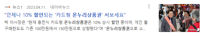 - 사용혜택 : 온누리 상품권 10% 할인 제공.
