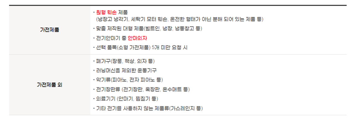 그동안 가전제품 배출시 배출비용 및 장소로의 이동이 상당히 번거로웠을 거라 생각됩니다.