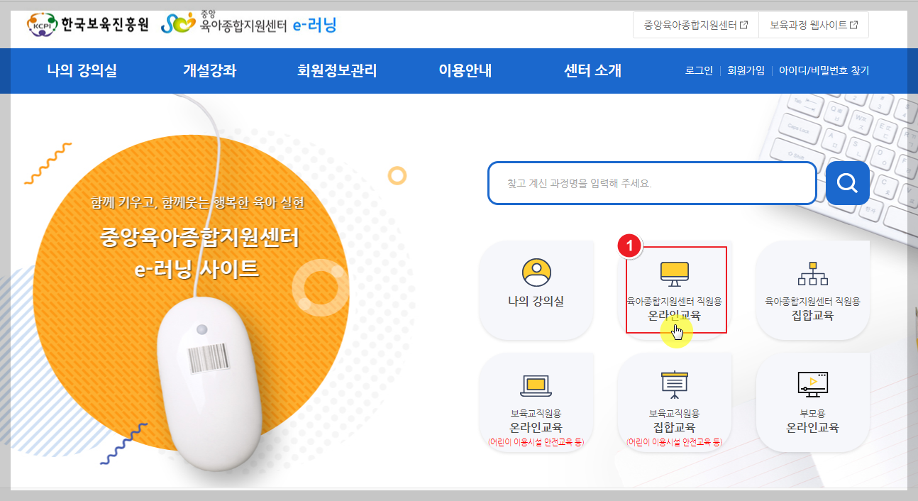 - 중앙육아종합지원센터 e러닝 홈페이지 접속