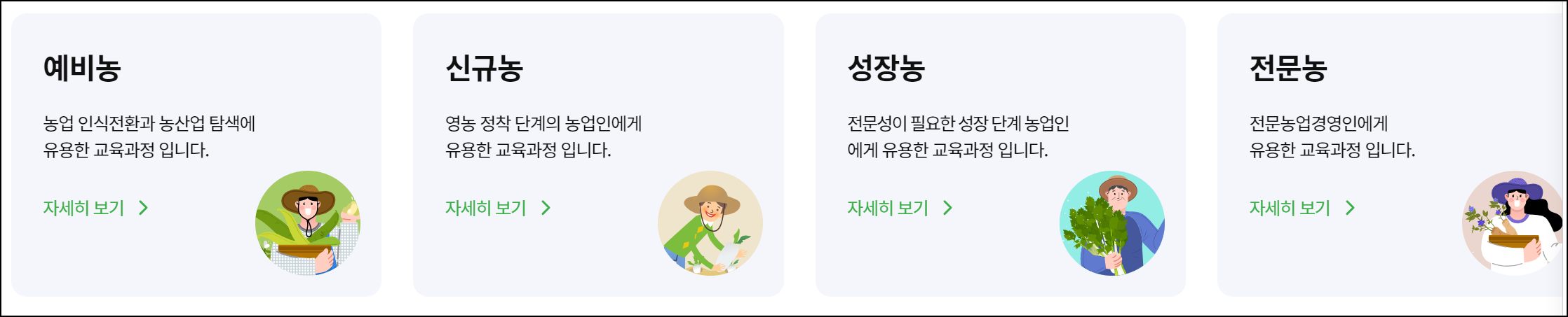 - 전문 분야 심화교육 : 유기농업, 스마트팜, 지속 가능한 농업 등 특정 분야의 심화 교육