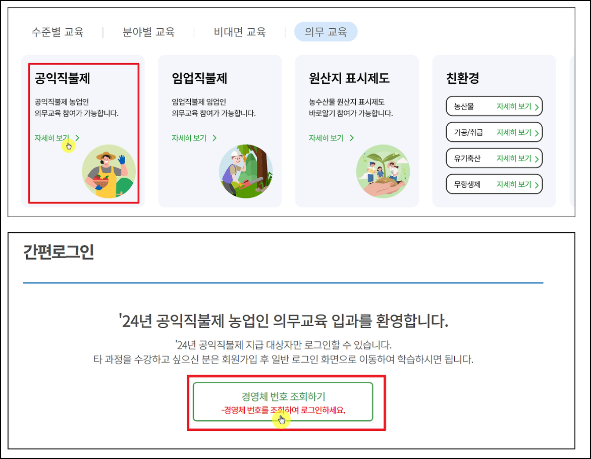 2024년 공익직불금 의무교육 농업교육포털 바로가기
