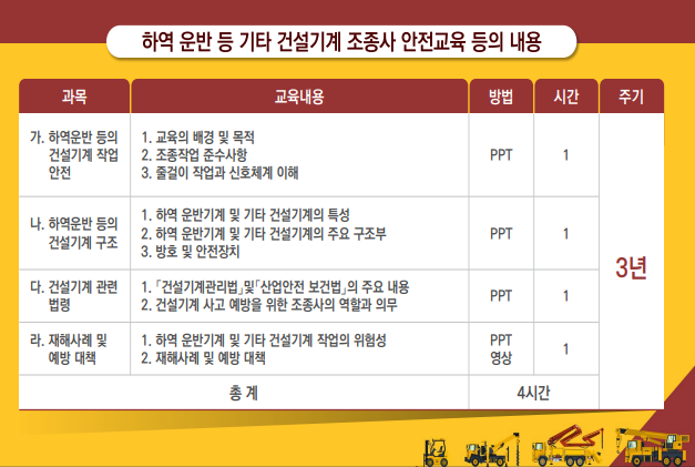 건설기계 운전 및 취급작업시 발생할 수 있는 안전사고 예방 및 안전의식을 높이기 위한 건설기계조종사 안전교육 신청 방법을 알아보도록 하겠습니다. 건설기계조종사 안전교육은 총 4시간으