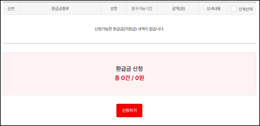 건강보험공단 홈페이지 또는 어플을 접속하여 환급금 조회/신청을 클릭합니다. 이후 본인인증 로그인을 통해 해당 절차를 진행하게되면 환급금이 있을 시 종류 및 성명, 청구기간, 금액에 대한 상세내용이 나오게 되며, 본블로거의 경우 환급금이 0원이기에 총 0건/0월으로 표기 됨을 볼 수 있습니다.