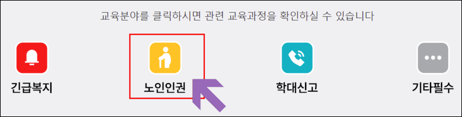 - 교육 과정 선택 : 원하는 교육 과정을 선택합니다. ( 예시 : 노인인권 의무교육)