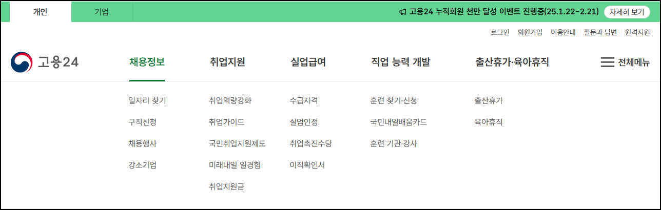 개인의 경우 고용24 회원가입 후 필요한 서비스를 검색하면 되는데, 채용·훈련정보는 맞춤서비스 설정으로 서비스를 제공. 내가 선호하는 지역의 일자리를 찾아보고, 이력서를 등록하고, 실업급여를 신청하고, 자격증을 따기 위한 직업훈련비용 지원도 신청할 수 있습니다.