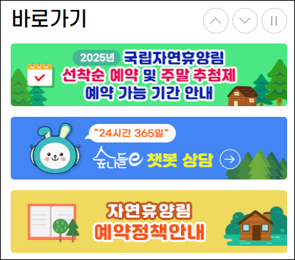 | 전국 46개 국립자연 휴양림 예약 |