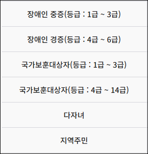 | 장애인 | 무료 | 장애인 전용 주차구역 무료 |