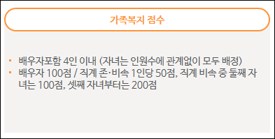 - 직계존비속(부모, 자녀 등): 1인당 50점