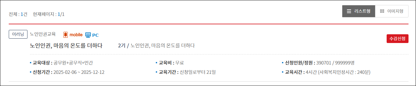| 방문교육 | 연 4시간 이상 | 강사가 기관으로 방문해 현장 교육 진행 |