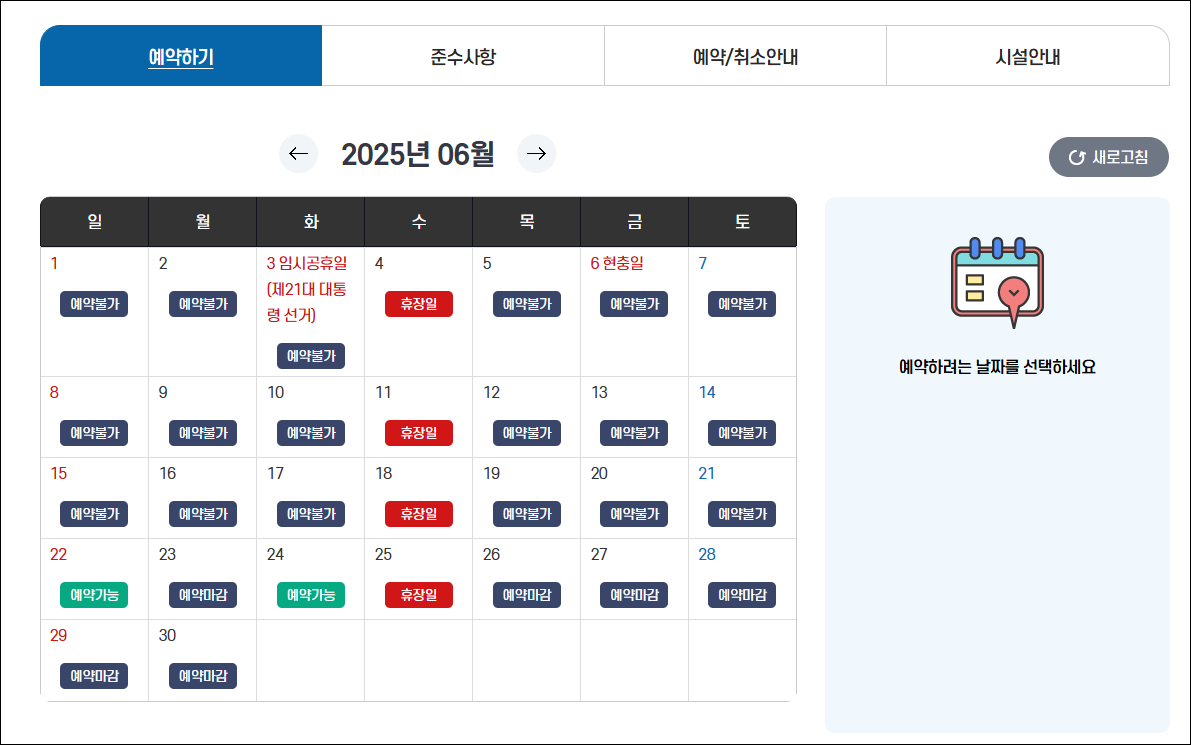 | 예약 일정 | - 2025년 4월 14일부터 온라인 예약 본격 개시 - 개장일: 2025년 4월 21일 - 운영일: 매주 수요일, 설·추석, 1월 1일 및 명절 당일은 예약 불가 |