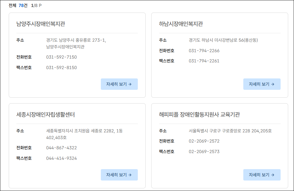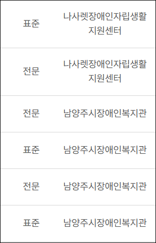 | 기타 | 지역 장애인복지관 자립생활센터 엔젤시터 등록기관 등 |