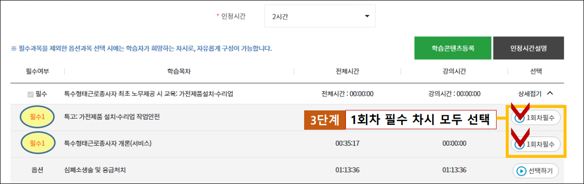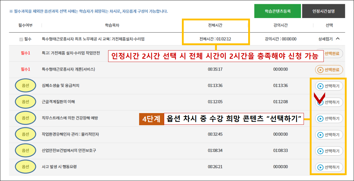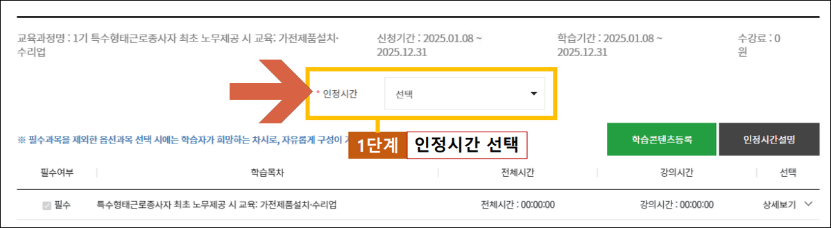- 본인 직종이 포함된 과정 선택 (예: 택배원, 대리운전기사, 건설기계 운전자 등)