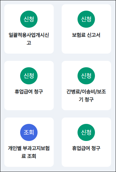 | 사업장 가입·관리 | 신규 사업장 보험 가입·변경·폐업 신고 |