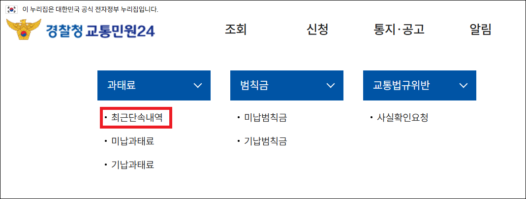 | 경찰청 | 이파인(eFINE) | 과태료 및 범칙금 통합 조회 가능 |
