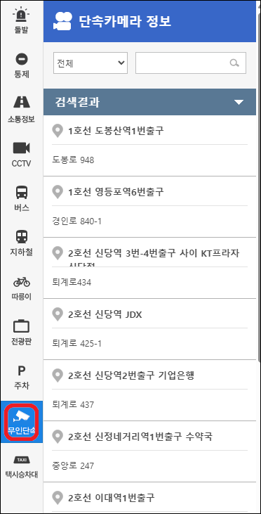 | 서울특별시 | TOPIS 교통정보센터 | 실시간 단속카메라 위치 확인 |