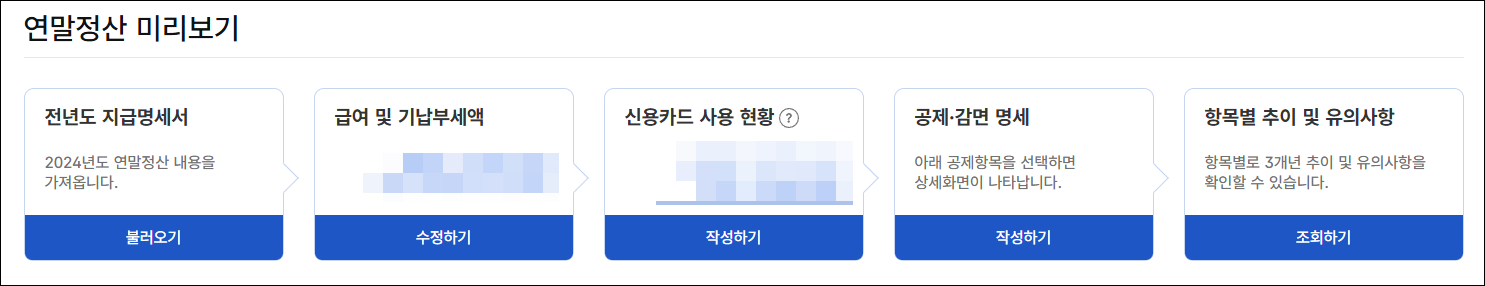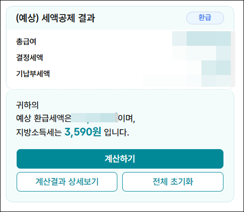 - 공제항목 변경은 예상액에 반영되지 않을 수 있으므로 본인이 추가로 입력해야 하는 경우가 있습니다.