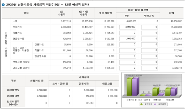 - 10월 이후의 사용내역은 자동 반영되지 않으므로 개인이 별도로 계산하거나 예상 사용액을 반영해보셔야 합니다.