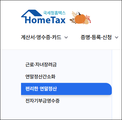 - www.hometax.go.kr에 접속 후 상단 메뉴에서 [조회/발급 → 연말정산 미리보기] 선택